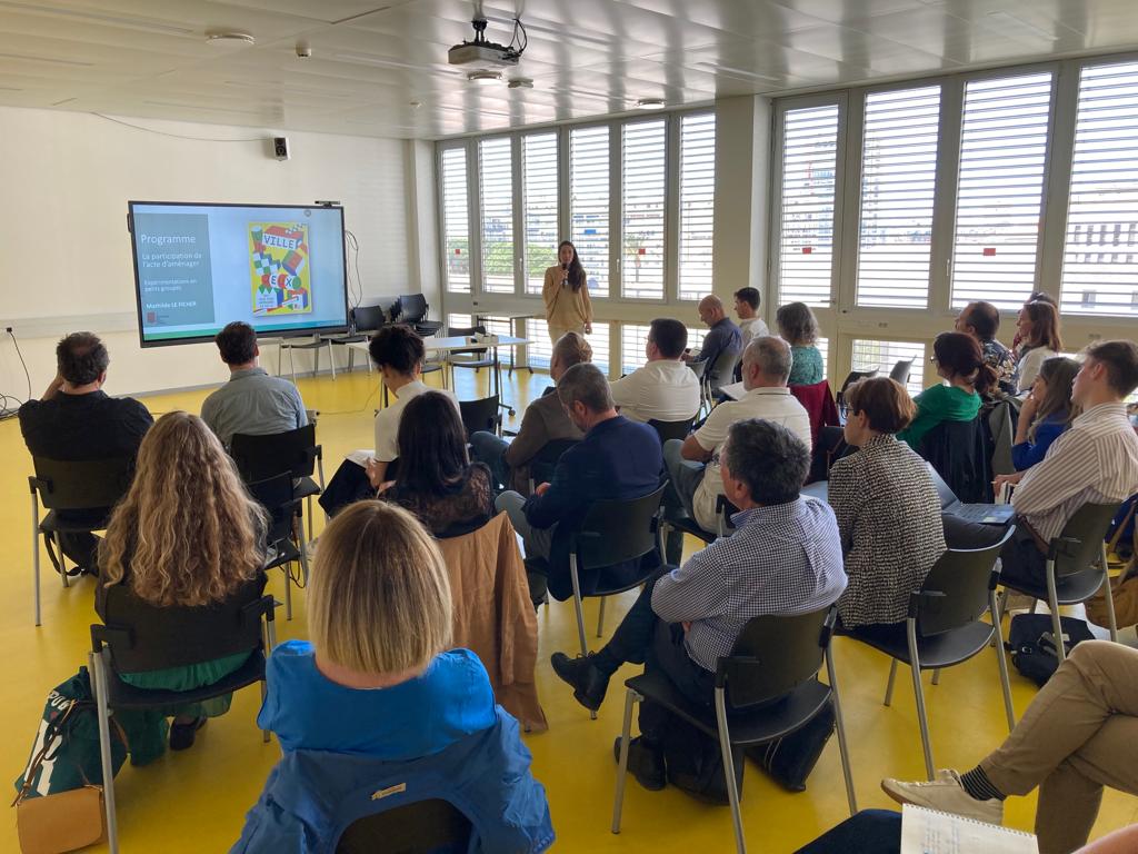 S’en est suivi une session d’échanges avec les participants avant d’aborder la pratique : l’exemple de Miramas (13). Retour d’expérience de co-construction avec les habitants et usagers d’un quartier d’habitat social par Maxence MORETEAU.
