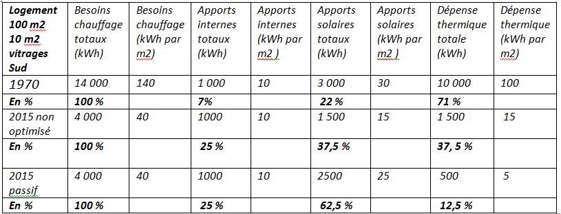 Résumé : la part des apports internes et solaires peut être de 80 à 90 % dans le bilan thermique d’hiver d’un bâtiment passif [1] (voir la fiche 1 sur les vitrages et le tableau N°1 ci-dessous). Il était de moins de 30 % avant les réglementations thermiques. La régulation de la température de chauffage doit donc évoluer en conséquence, en fonction des usages et des orientations, si l’on veut arriver aux résultats attendus. Ce travail d’harmonisation impose à l’architecte et au thermicien de travailler en commun dès les premiers traits de crayon. Si les ingénieurs n’arrivent qu’après l’architecture, c’est le début des problèmes pour les utilisateurs !
