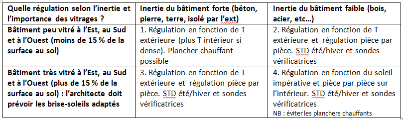 Les exceptions deviennent des règles. Le tableau n°2 ci-dessous nous précise les cas où la régulation prend une grande importance, au risque d’avoir des surchauffes AUSSI en hiver.