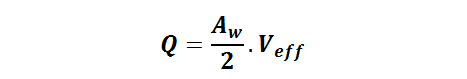 Le débit volumique d’air renouvelé à travers l’ouvrant est alors égal au produit de la vitesse efficace du vent par la moitié de la surface Aw (en m²) de l’ouvrant (l’autre moitié servant à la sortie de l’air)