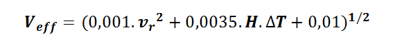 Un modèle empirique permettant l’évaluation des débits de renouvellement d’air par simple exposition au vent d’une fenêtre, a été proposé par De Gidds et Phaff en 1982. La vitesse effective du mouvement d’air généré est donnée par la formule suivante (voir en bas de page l’image 1).