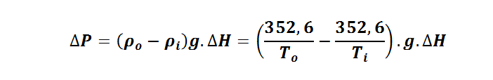 À titre d’exemple, une cheminée de 10 mètres de haut présentant un écart de température de 10°C entre sa base (air entrant) et son sommet (air sortant) génèrera une pression différentielle de 4 pascals (le pascal correspond à une force de 1 newton exercée sur une surface de 1 m², soit 1 kg/s².m - la pression atmosphérique moyenne est de 1013 Pa). On obtient un débit d’environ 2,6 m3/s par m² de section, soit 9000 m3/h. Une courette de 2 m² dans un R+3 permet ainsi d’atteindre un débit théorique de 18 000 m3/h si une ouverture ad hoc, de même section, existe en point bas et en point haut.