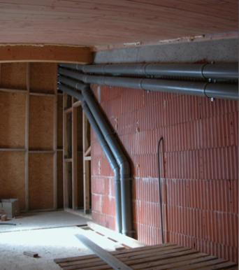 En cas d’utilisation de conduits, il pourra être pris en compte les pertes de charge aérauliques. La formule qui suit considère un conduit à faible perte de charge, de type cage d’escalier ou courette.